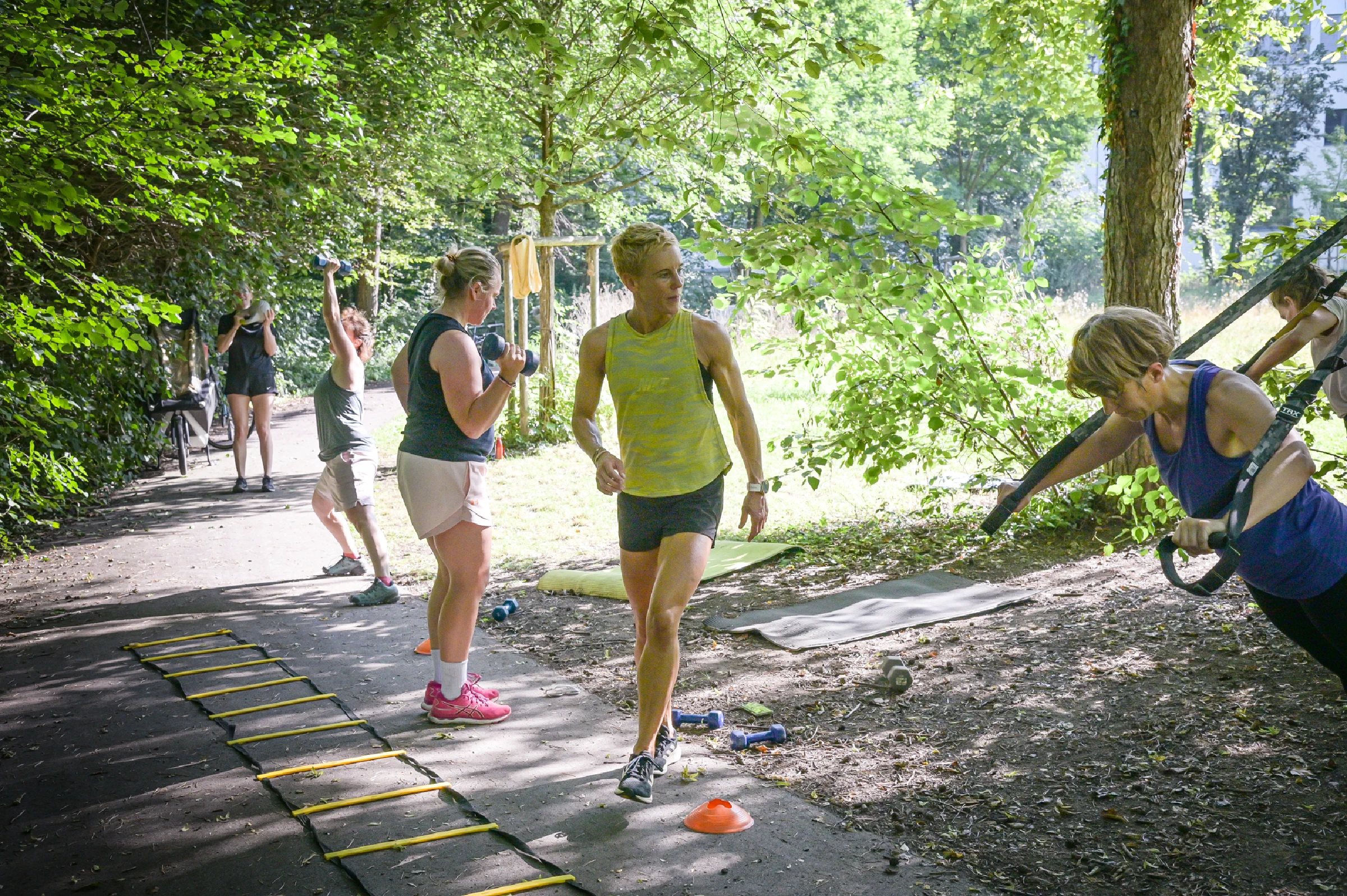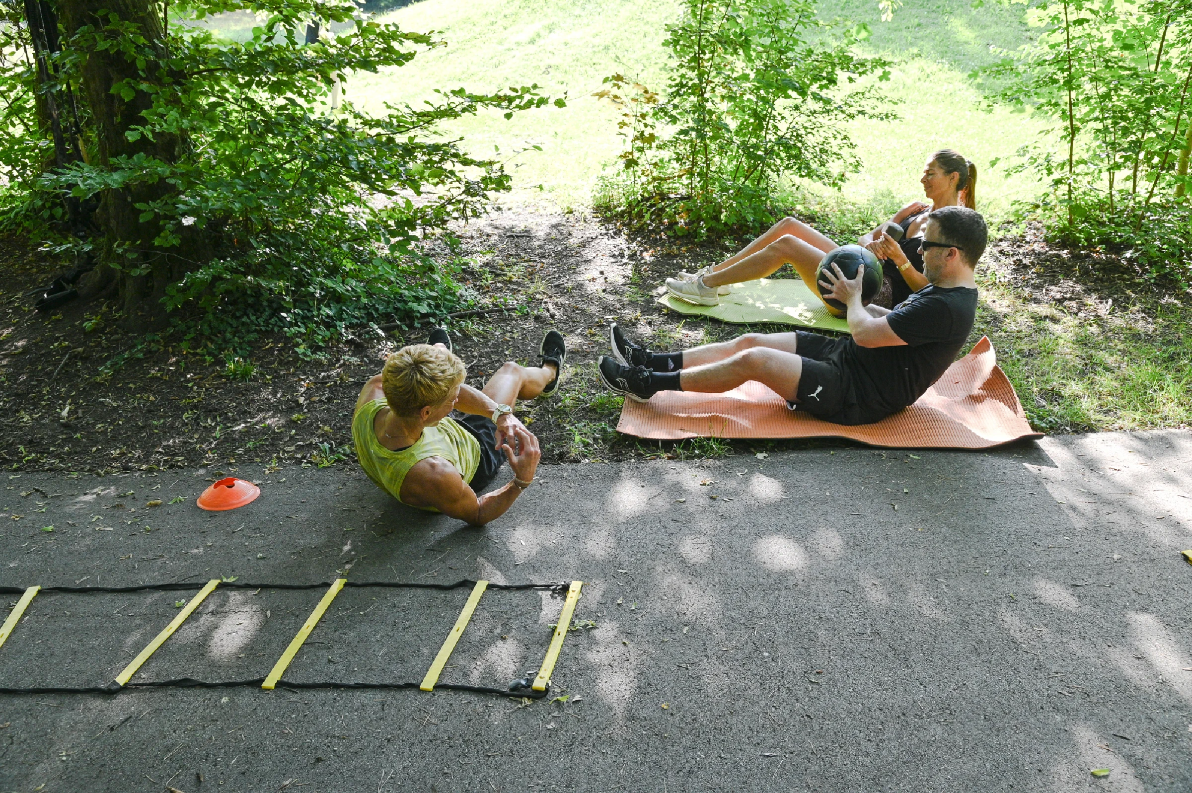 Wie wir gemeinsam trainieren: Einzeln und in der Gruppe - outdoor und indoor. Sie können mich für ein individuelles Privattraining buchen oder in der Kleingruppe trainieren. Die Einheiten finden ganz nach Ihrem Wunsch an schönen Plätzen draußen, bei Ihnen zu Hause oder in meinem eigenen, modernen Fitnessraum in München-Harlaching statt. Abwechslung und Spaß sind garantiert: Wir sporteln im Zirkel mit Trainingsgeräten oder dem eigenen Körpergewicht und einer unendlichen Übungsvielfalt.